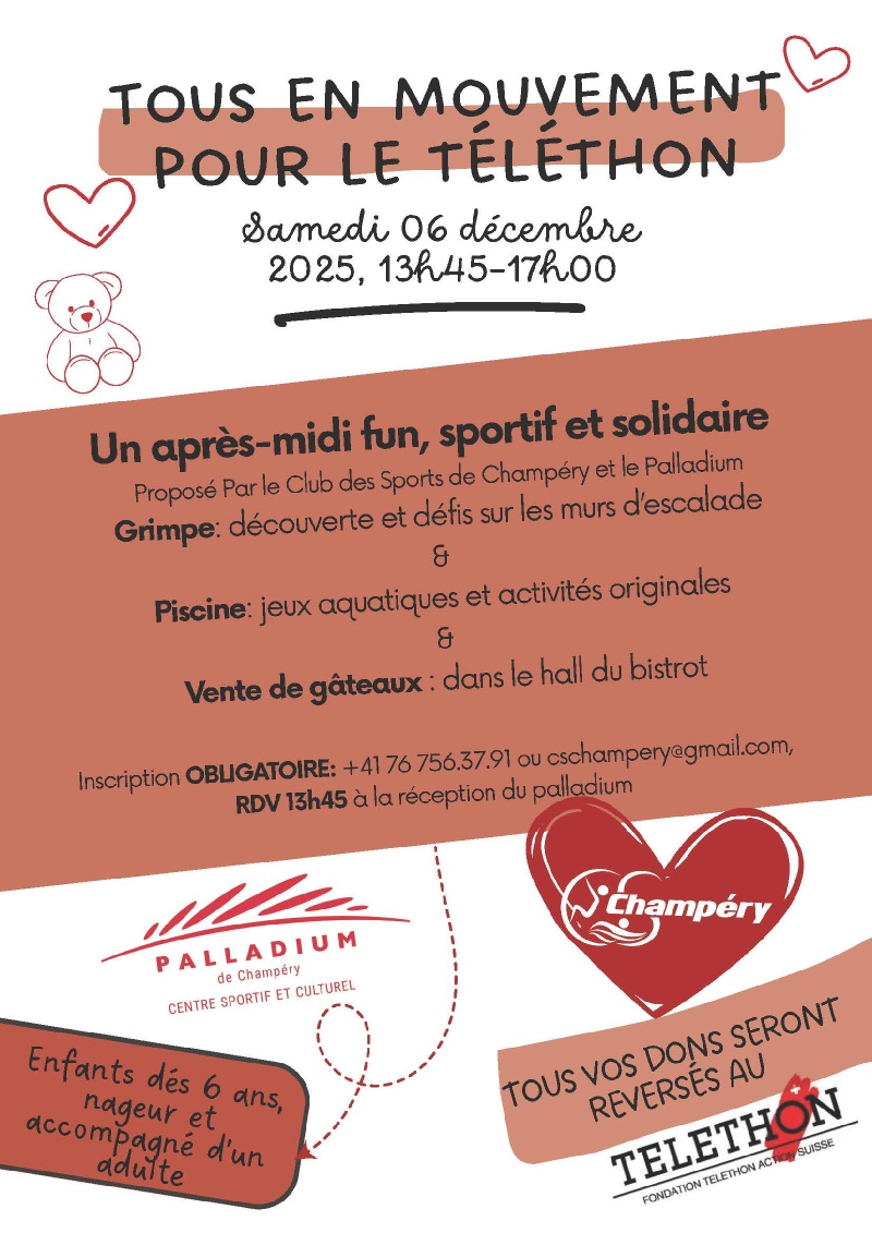 Le Club des Sports de Champéry est une association dont le but est l’apprentissage, la pratique, le développement et l’encouragement : de la natation, et des sports de natation, de l’escalade sportive et d'activités multisportives indoor et outdoor. Nos moniteurs sont agréés Jeunesse + Sport. Les cours se pratiquent au sein du Palladium de Champéry.